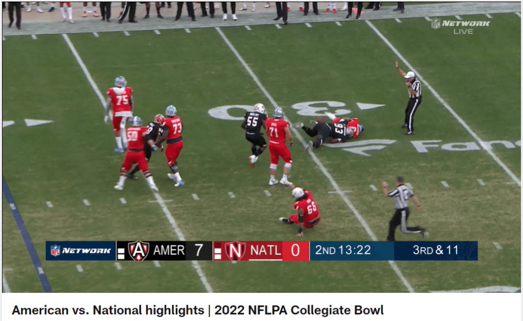 Montana State, the 2021 NCAA DI FCS national runner-up, was represented by 6-foot-2 WR Lance McCutcheon in Pasadena. The Bozeman (MT) product finished with three receptions for 49 yards, including a pretty 31-yard sideline grab that set up the National Team’s first touchdown late in the third quarter.